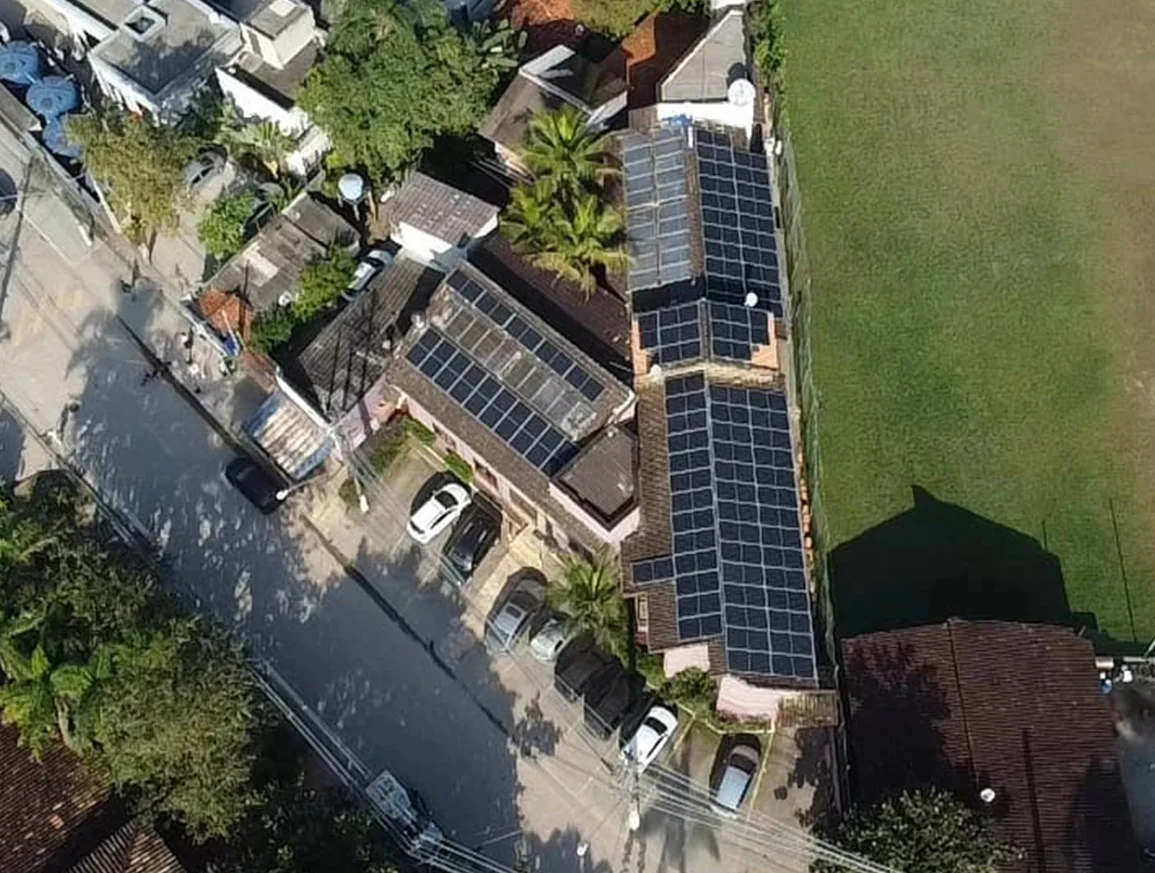 O imóvel consome a energia gerada pela usina durante o dia, reduzindo significativamente a necessidade de uso da rede pública.